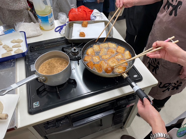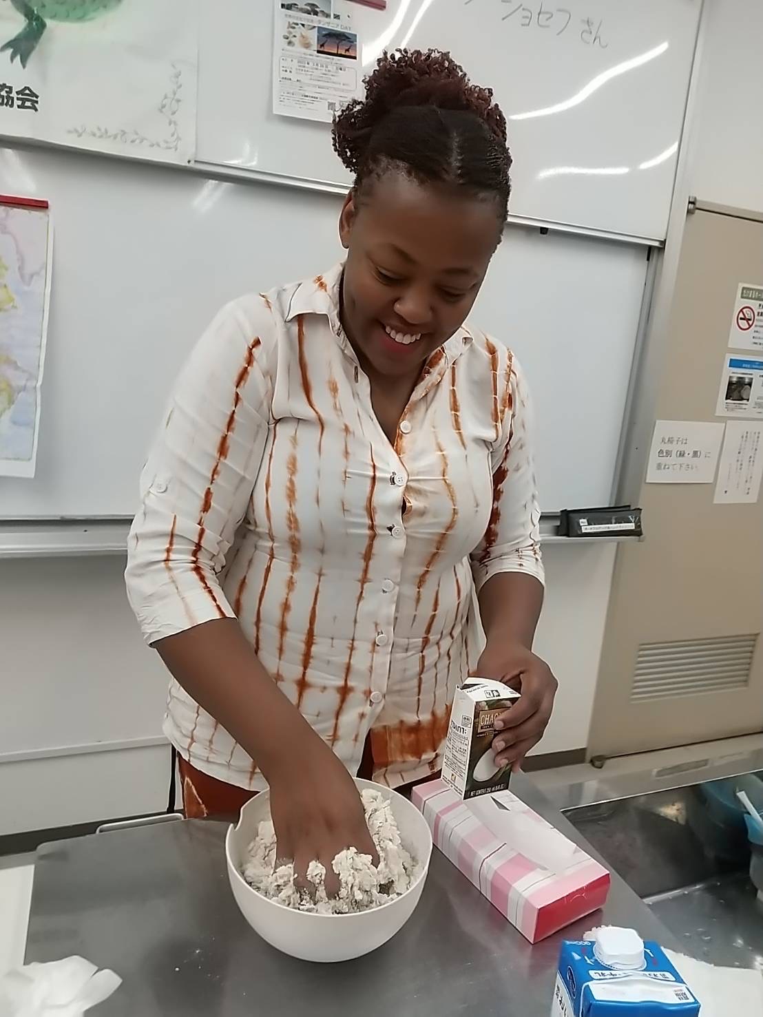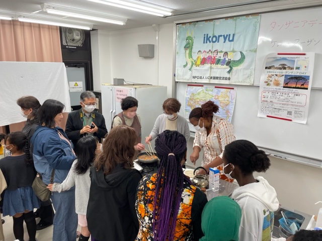 途中、タンザニアのスパイスのきいたお茶とマンダジ(揚げパン)を調理していただき、参加者のみんなでおいしくいただきました。