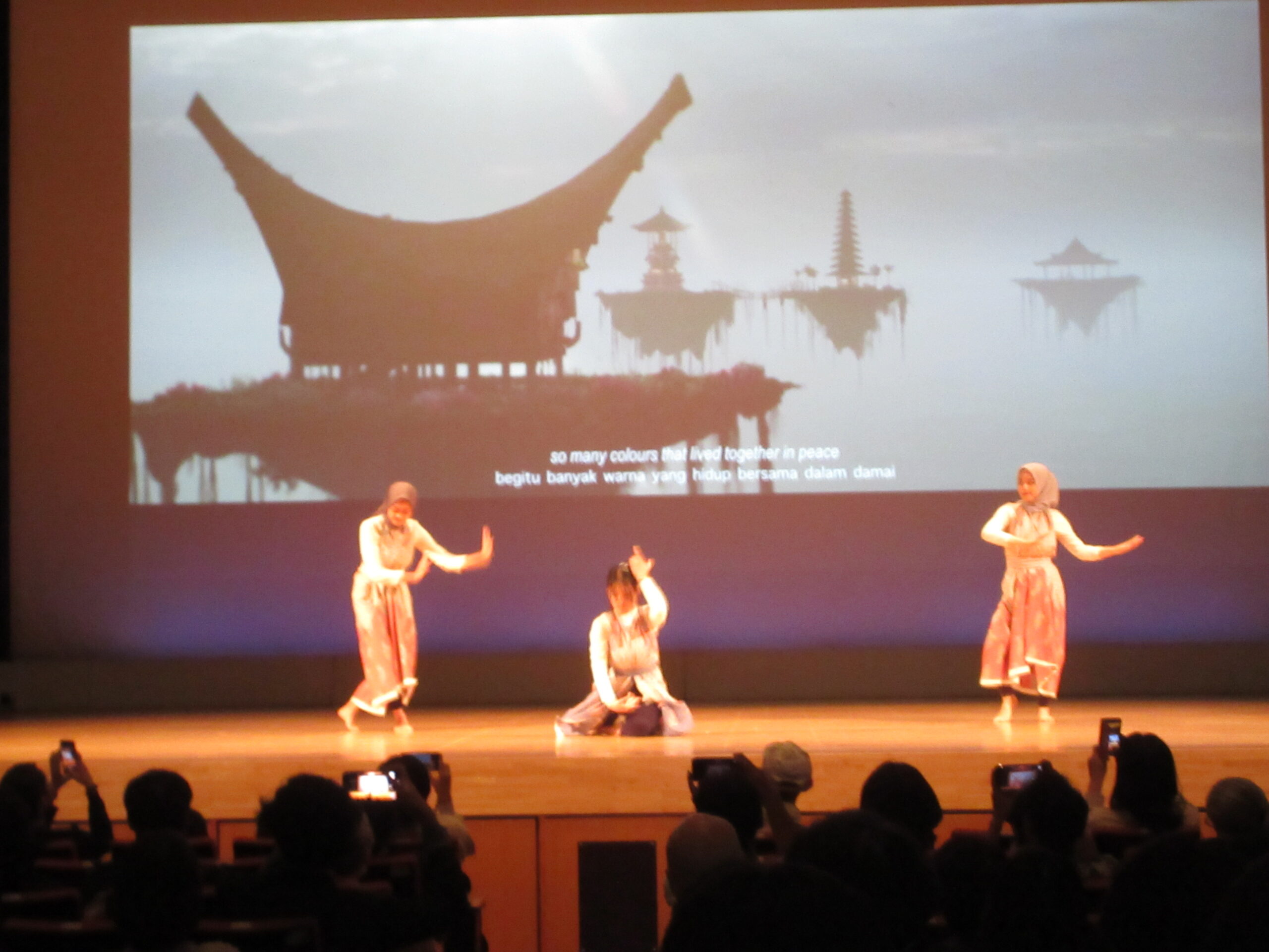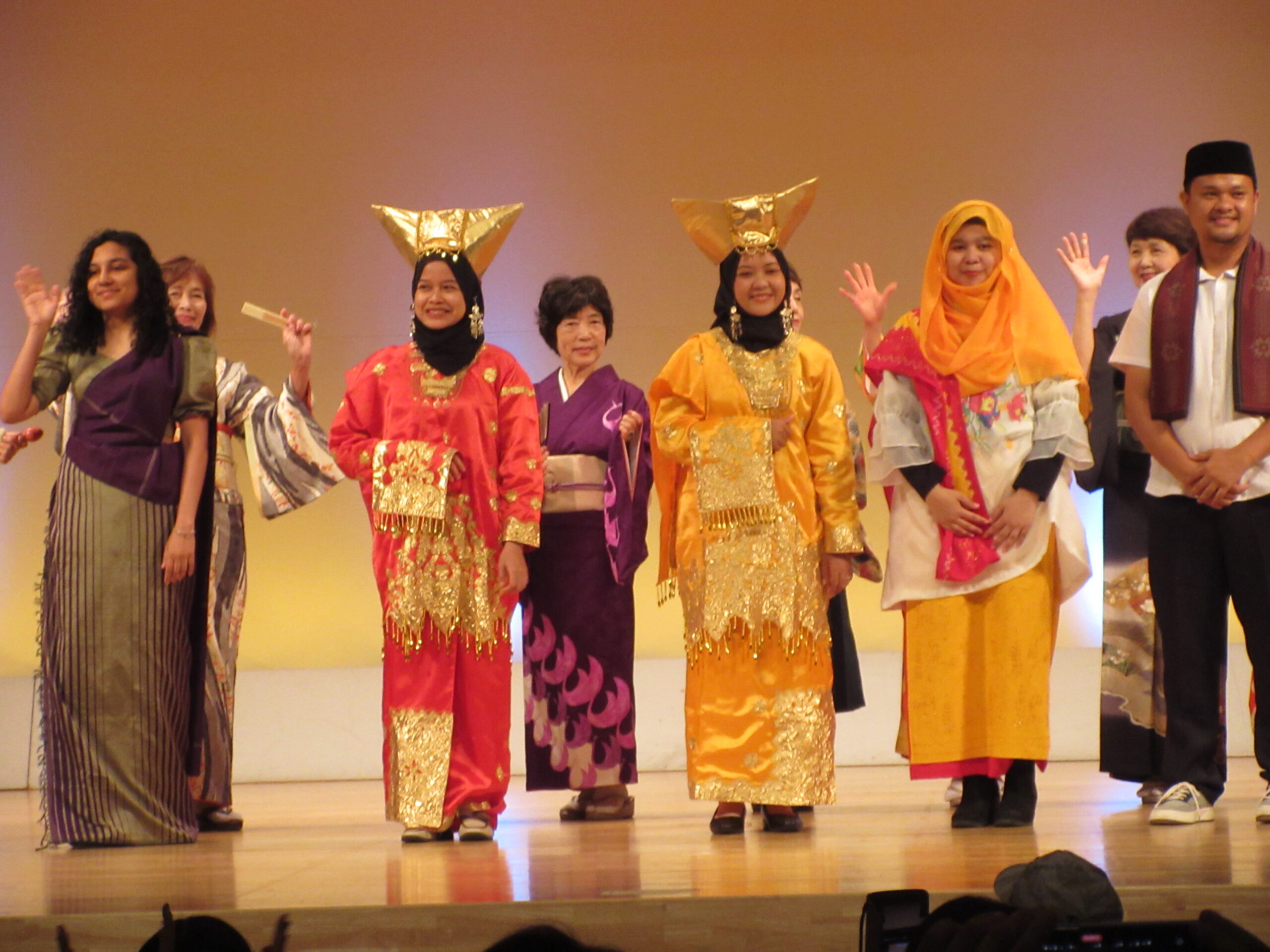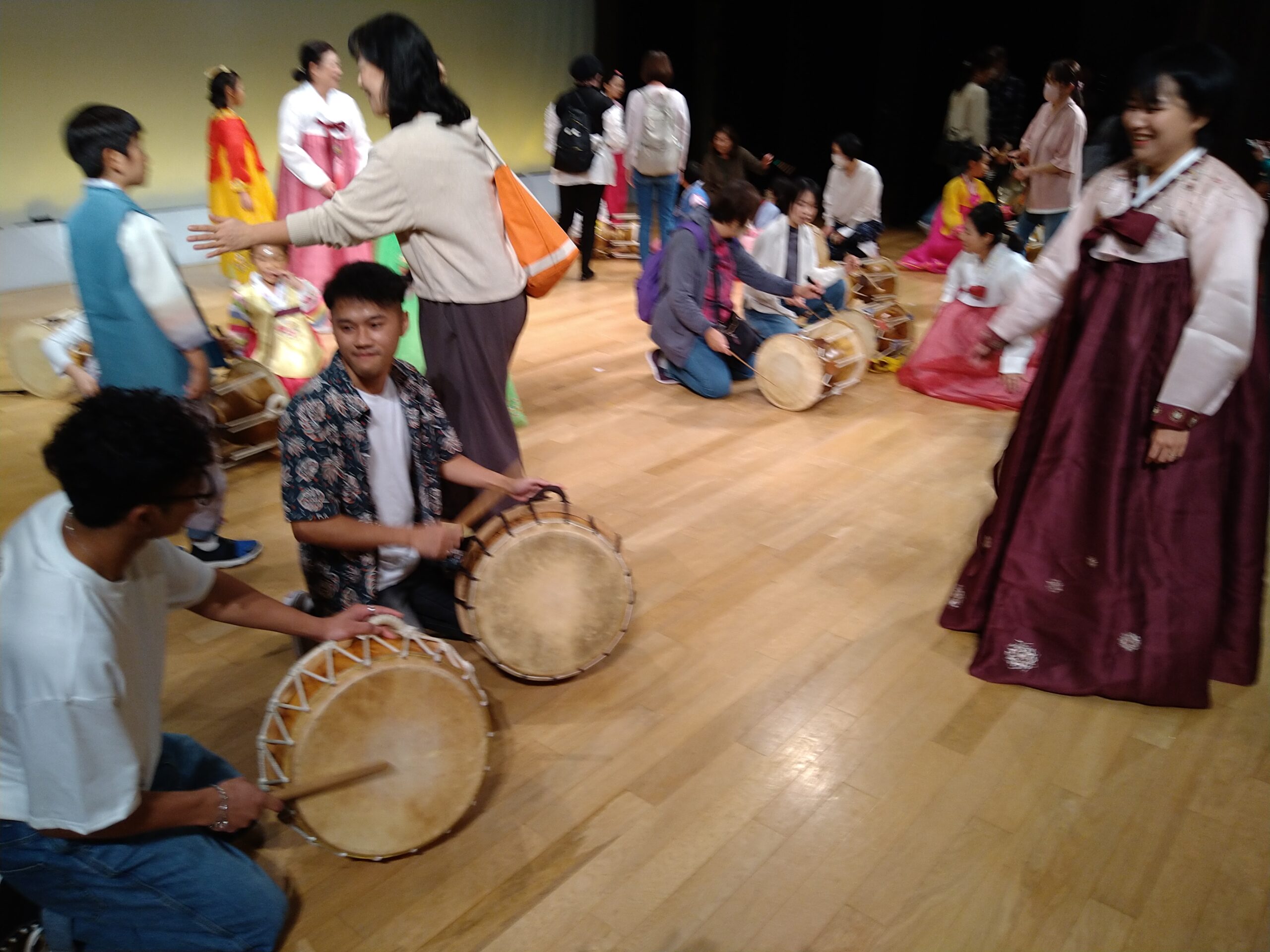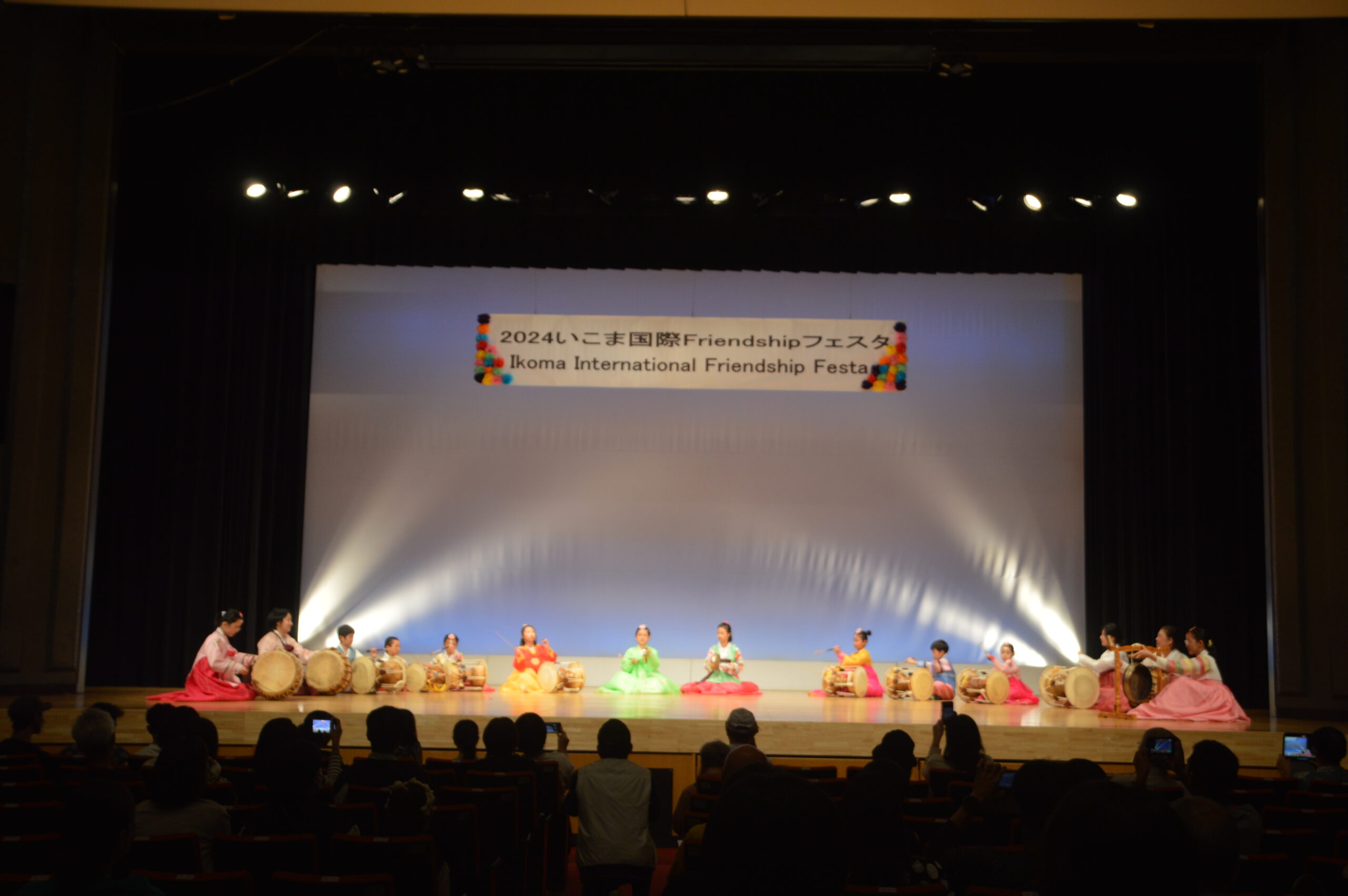 オープニングのステージでは、市長開会あいさつ、民族衣装ファッションショーやインドネシア伝統舞踊などに続き、生駒ハングル学校の子どもたちが「サムルノリ」を発表。練習の成果をいかんなく発揮し、観客から大きな拍手をいただきました。