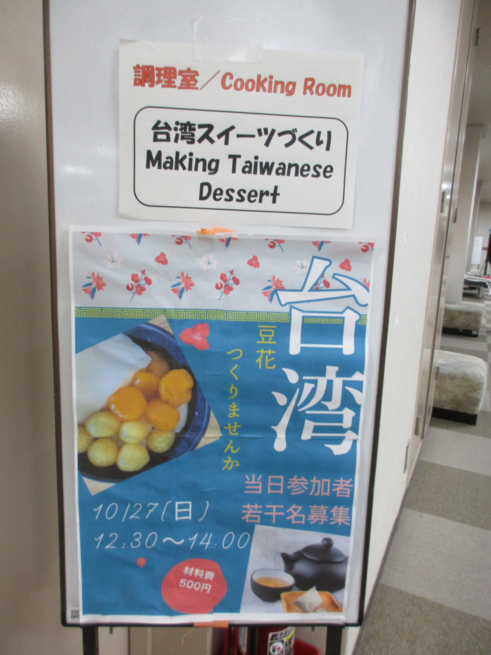 調理室では、台湾から研究員として来日中の先端大研究員ご夫婦を講師に迎え、豆花(トウファ)を市民の皆さんとつくりました。