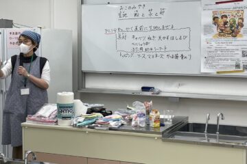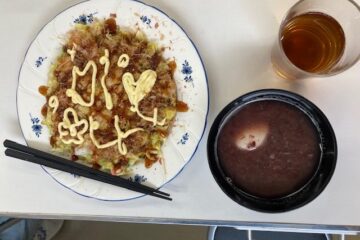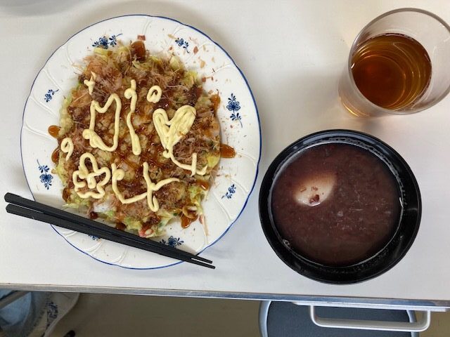 今回のメニューは、関西の定番料理、お好み焼きと白玉ぜんざい