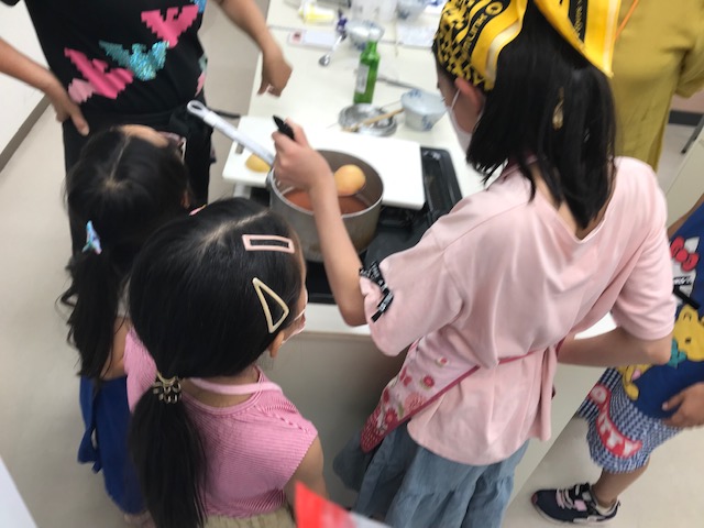 2日目の午前中はスタッフ指導の下、桃のコンポートのジュレをつくりました。冷えたジュレを食べながら、交流をさらに深め、秋にまた会うことを約束して、楽しい2日間を終えました。