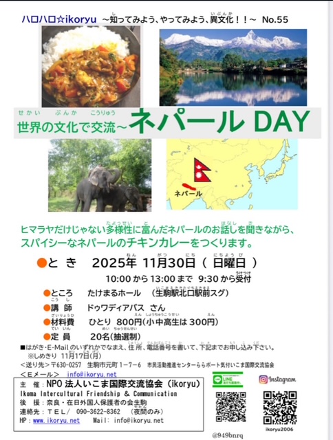 11月30日(日)、たけまるホールでハロハロ☆ikoryuネパールdayを開催します。