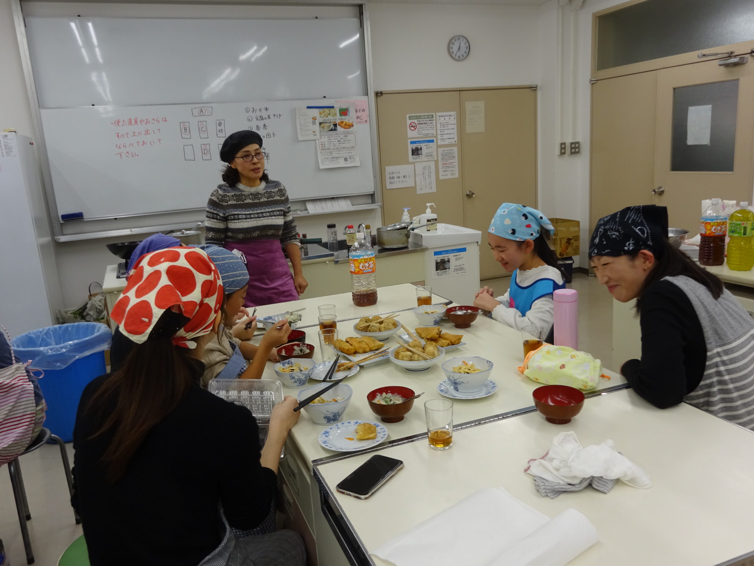 できあがった料理をいただきながら、講師の涂(と)輝(き)さんから中国の人々の生活のようすや料理のお話をうかがいました。さすが、長い歴史と気候風土や民族の多様性に富む国、私たちがまだ知らない食材や料理があるのでしょう。中国という国の奥深さを改めて感じることができた中国DAYでした。