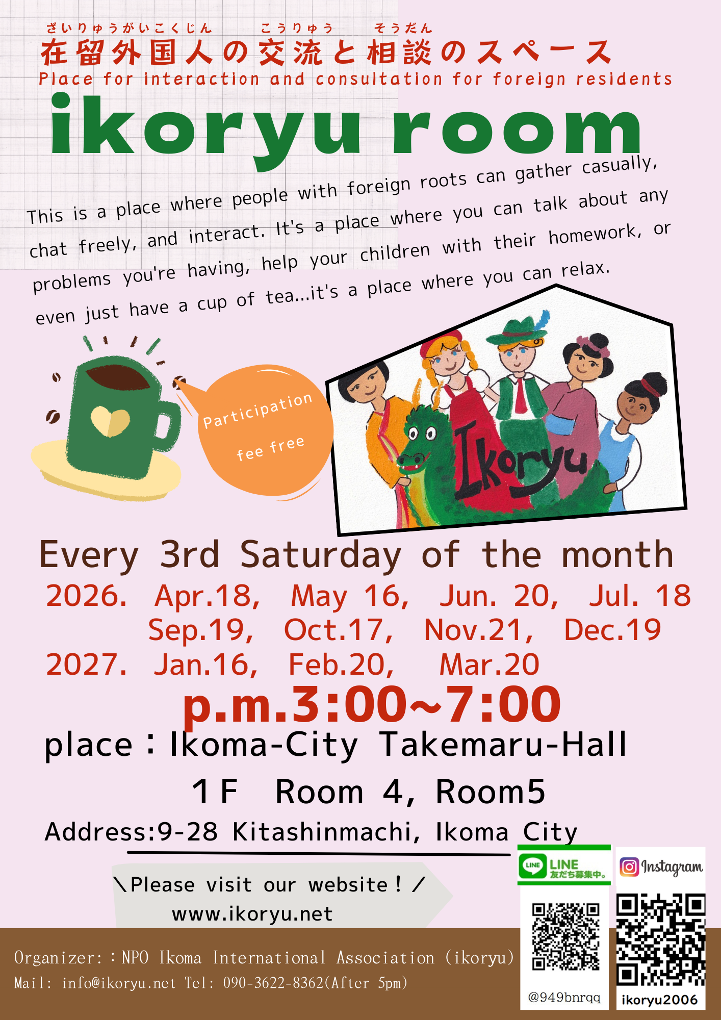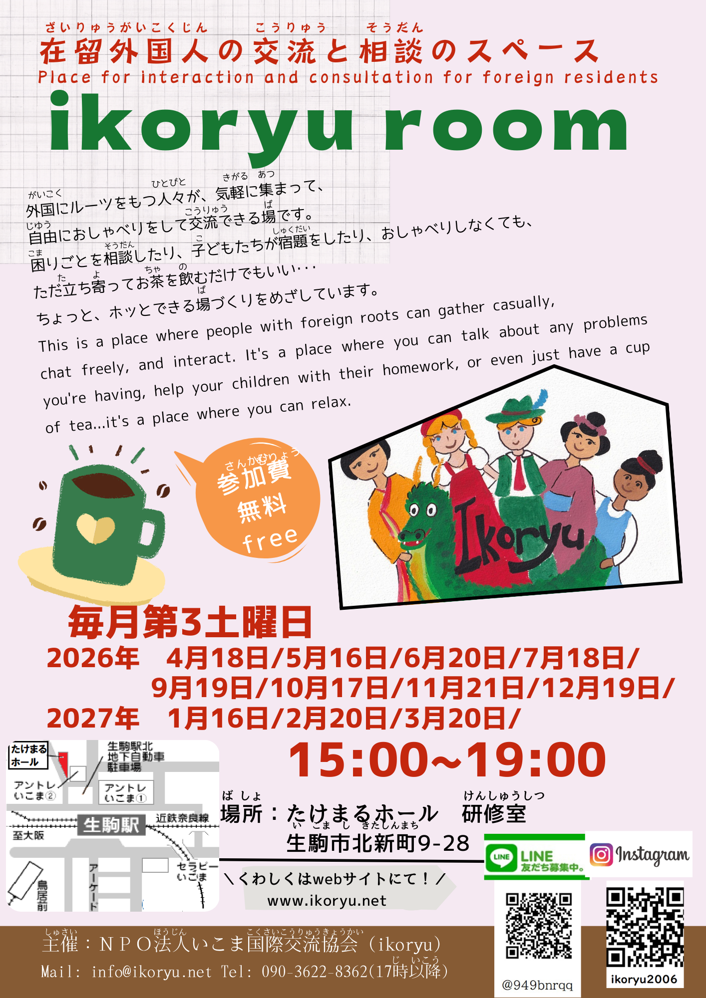4/18(土)ikoryu room~在住外国人の交流と相談のスペース 毎月第3土曜日に開設します!
