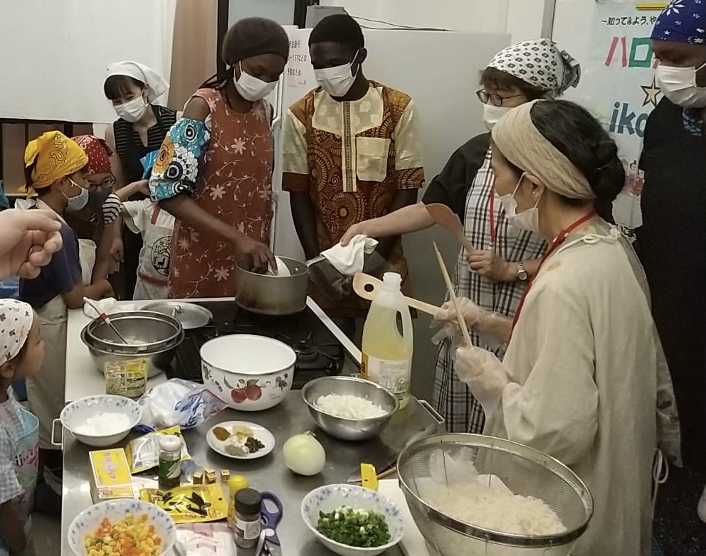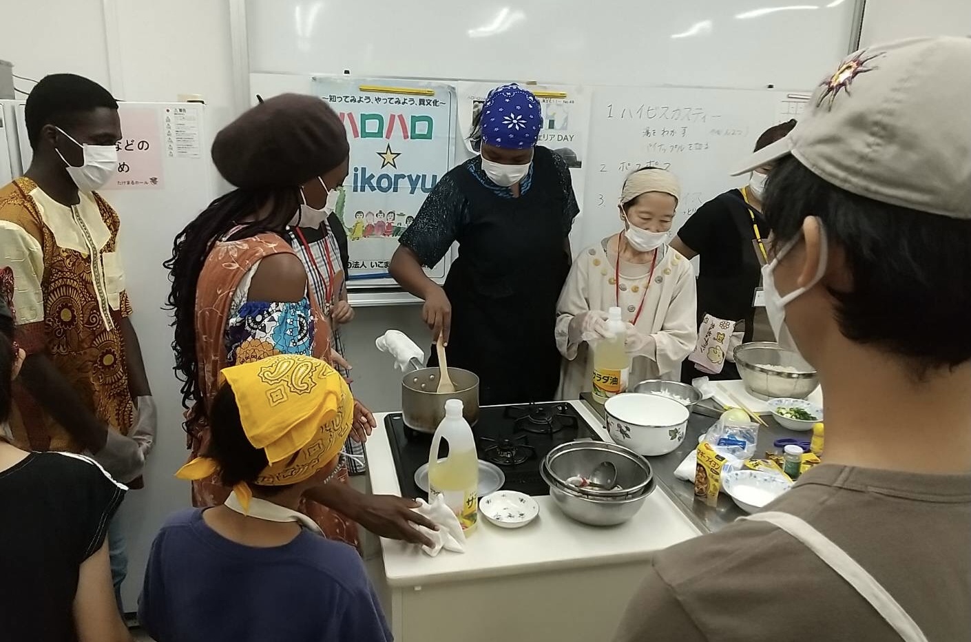 今回は市内在住のナイジェリア出身のマハトマ・マーシーさんとそのご家族を講師として、フライドライス、ポフポフ、ハイビスカスティーをつくりました。