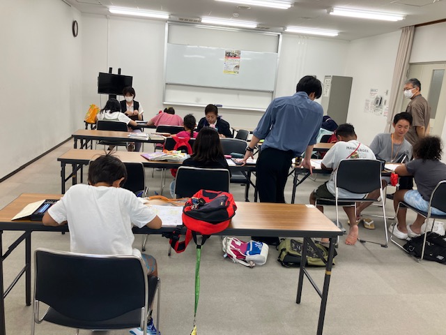 ボランティアの先生といっしょに、夏休みの宿題や課題に熱心に取り組みました。