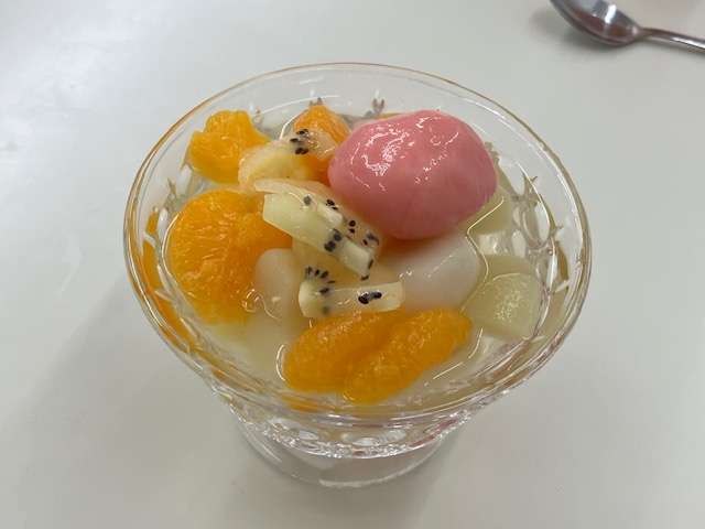 2日目の最後は、お楽しみのおやつタイム。みんなで白玉フルーツポンチをつくって食べました。